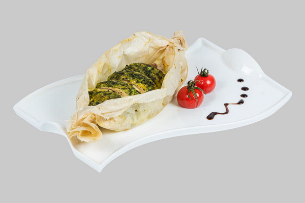 филе куриной грудки, специи, шпинат, сыр творожный, сыр российский, помидорка черри
